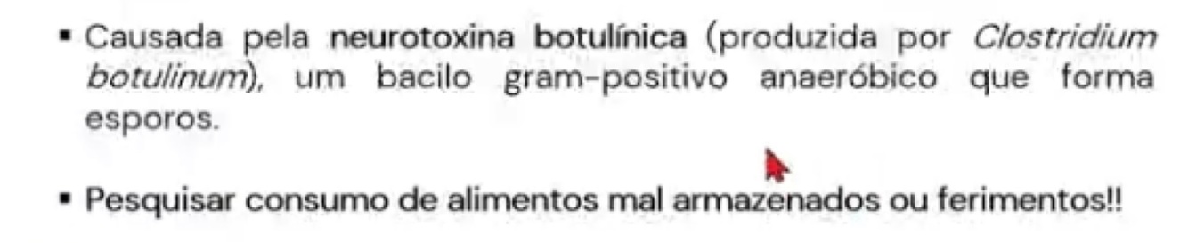 Principais características do botulismo: