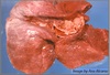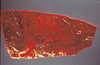 The appearance of a nutmeg liver occurs because there are red central veins and sinusoids between tan areas of swollen hepatocytes. This occurs with right sided heart failure from passive congestion of the sinusoids of hepatocellular hypoxia. Pericardial effusion causes right sided heart failure and is the cause of the liver’s appearance.