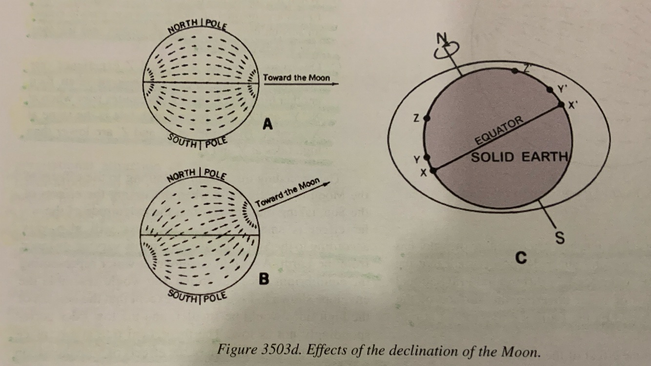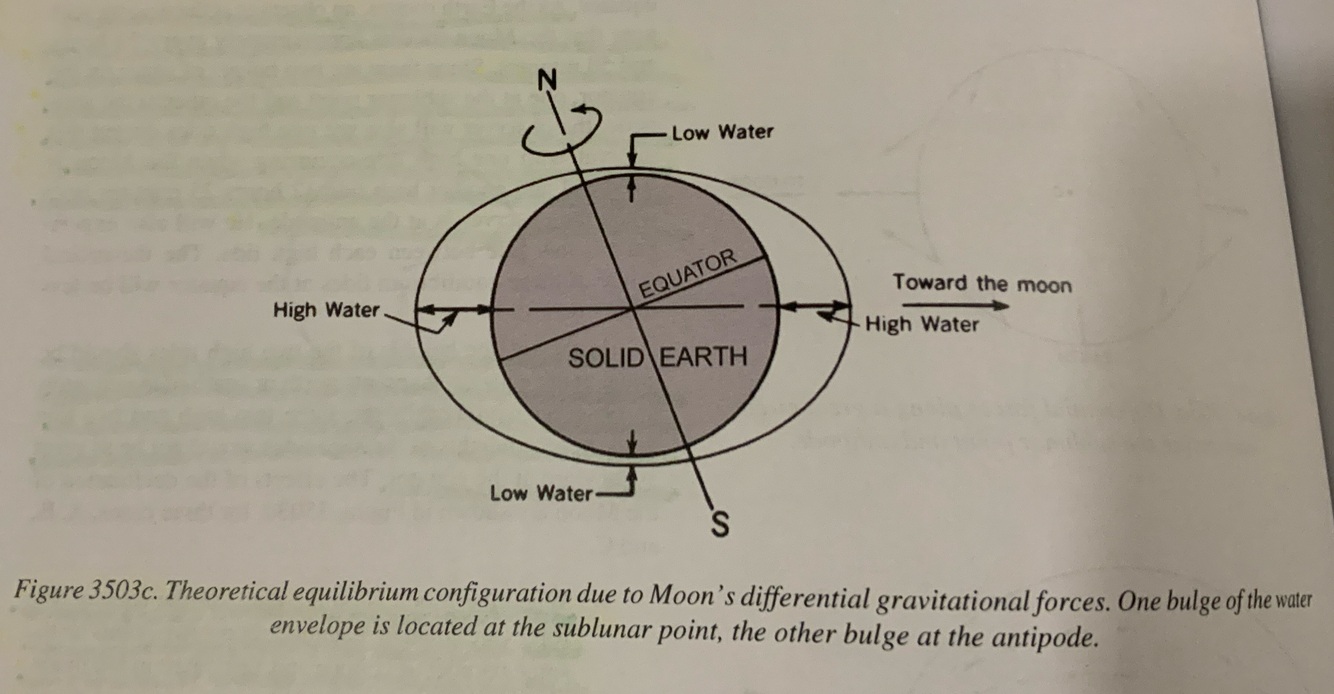 This has two interactive but distinct components: One is the tide, generating forces are differential forces between the gravitational attraction of the bodies (earth-sun and earth - moon). The other is the centrifugal forces on the earth produced by the earth’s orbit around the sun and the moons orbit around the earth.