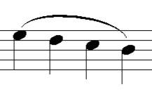 → Play the notes under the slur in one continuously moving bow stroke.