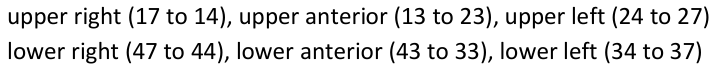 Recording BPE: what are the 6 sextants that the dentition is divided into?