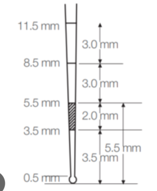 Probing depth >5.5 mm (black band entirely within the pocket, indicating pocket of 6 mm or more)