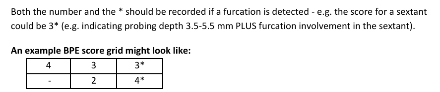 sextant. This will help to gain a fuller understanding of the periodontal condition, and will make sure that furcation involvements are not missed. If a code 4 is not detected, then all sites should be examined to ensure that the highest score in the sextant is recorded before