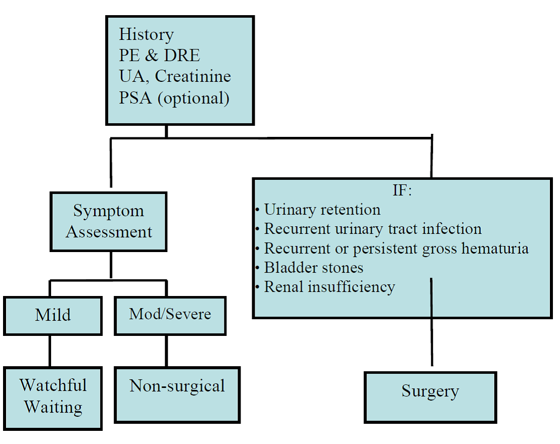 What are the signs and symptoms that alter the treatment algorith for BPH?