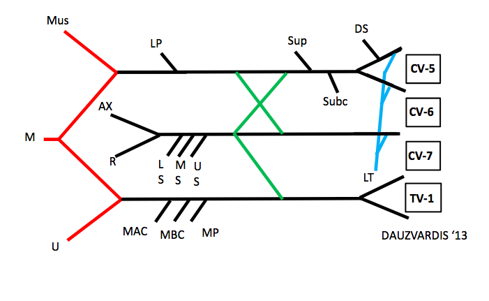 Middle: Lower Subscapular, Middle Subscapular (thoracodorsal) and Upper Subscapular