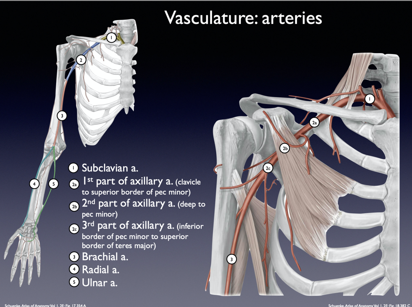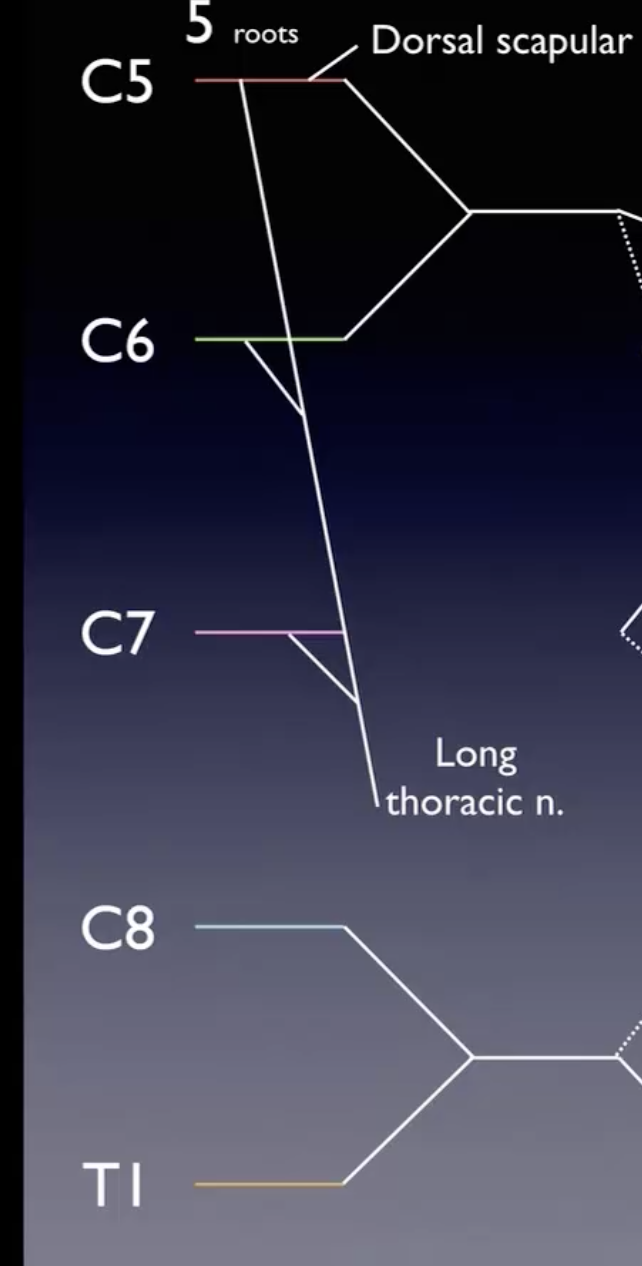 It arises from the ventral rami of C5, 6 and 7 in the brachial plexus.