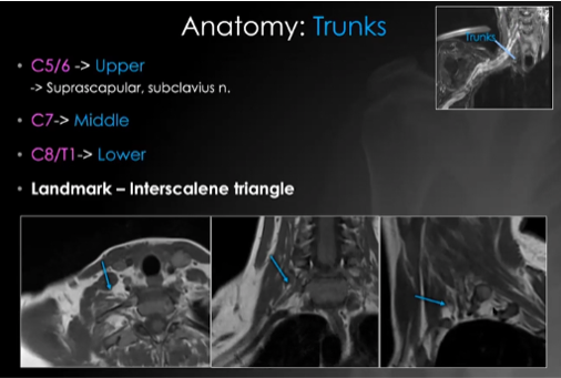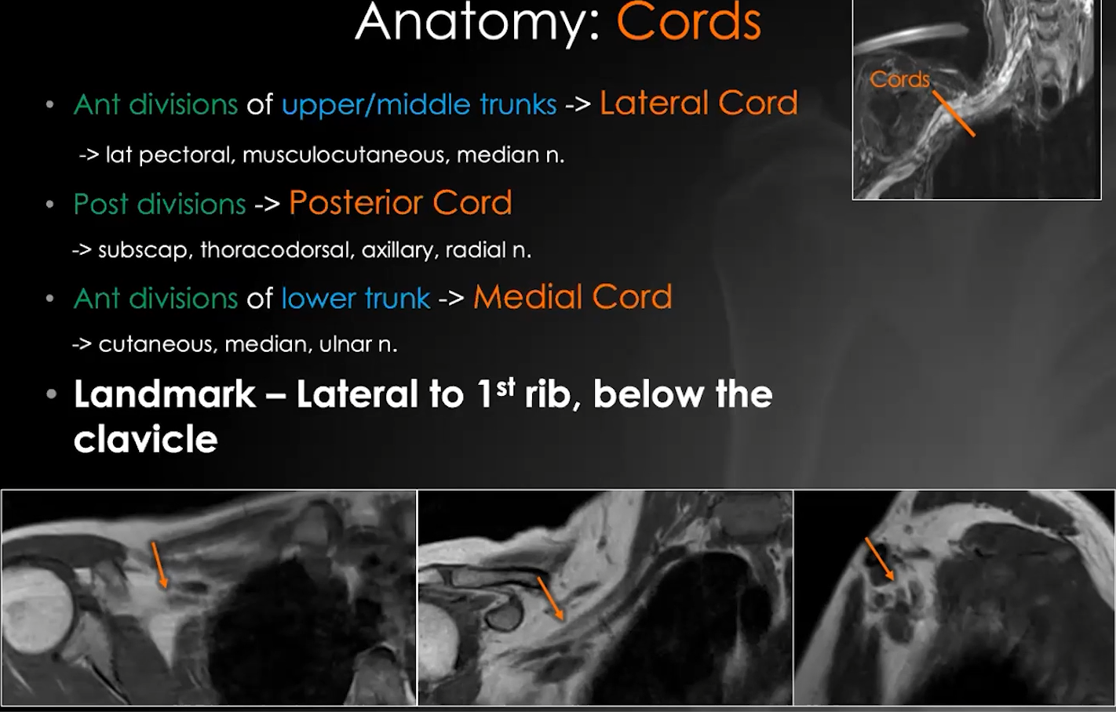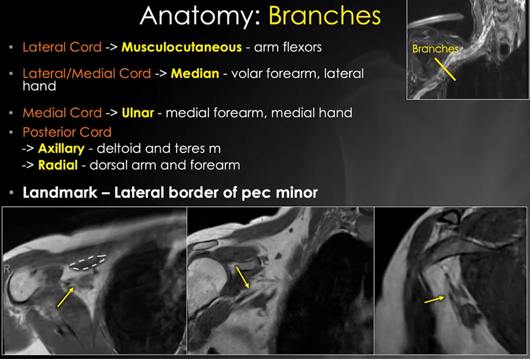 good for normal anatomy, Nerves really stand out due to peri-neural fat planes good for looking for muscle atrophy
