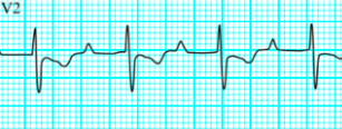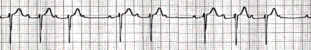BAV 2º grau Mobitz tipo I (Fenômeno de Weckebach): PR se alargando até bloquear P