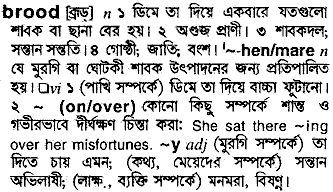 Short Definition : sit on in order to hatch; think deeply or worry anxiously; N: the young of certain animals; group of young birds hatched at one time