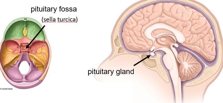 has important communications with the hypothalamus. It sits under a small piece of dura covering the sella turcica