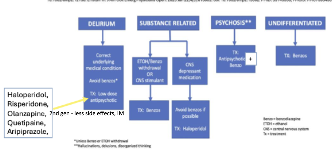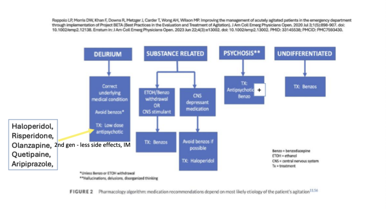 -antipsychotics: Haloperidol, Risperidone, Olanzapine, Quetipaine, Aripiprazole
