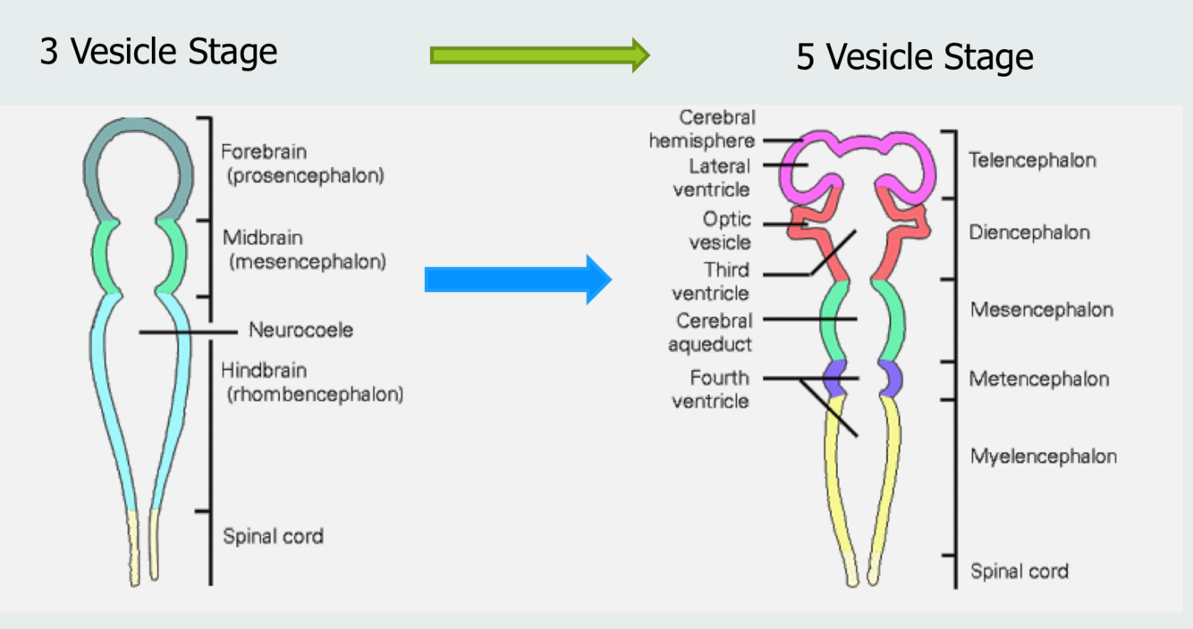 allows for 2 different parts of the brain to develop from the hindbrain vesicle. More rostral part is the pons. And the most caudal part becomes continuous with the spinal cord and is called the medulla oblongata.