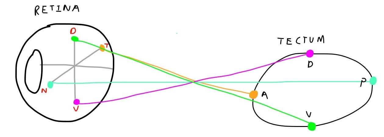 What is the structure of the fish/amphibian retinotopic map in the tectum?