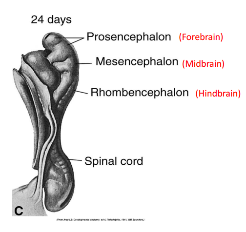 Following closure of the anterior Neuropore there is extensive proliferation of rostral neural tube into 3 primary brain vesicles: