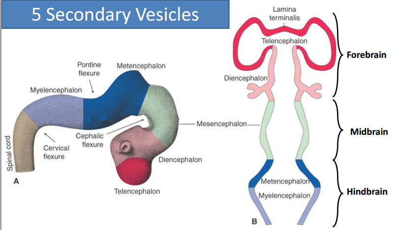 Resulting in five secondary vesicles (weeks 5 and 6)