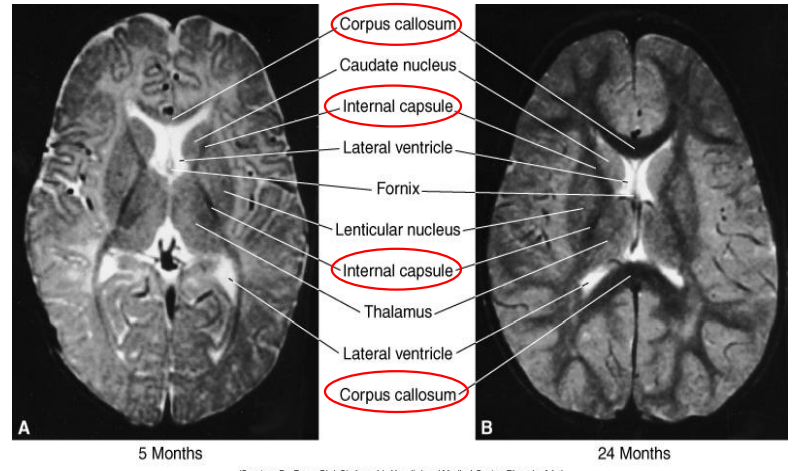 Myelination occurs primarily in the ____ period.