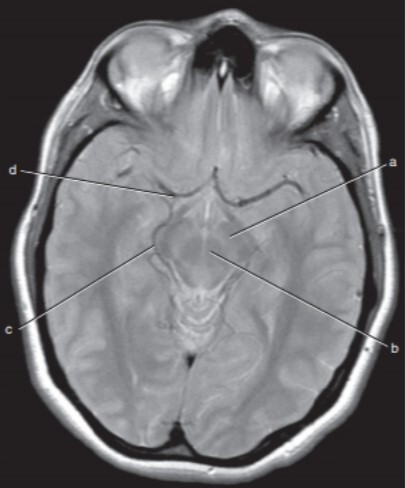 c=Right ambient cistern (with Rt posterior cerebral artery)