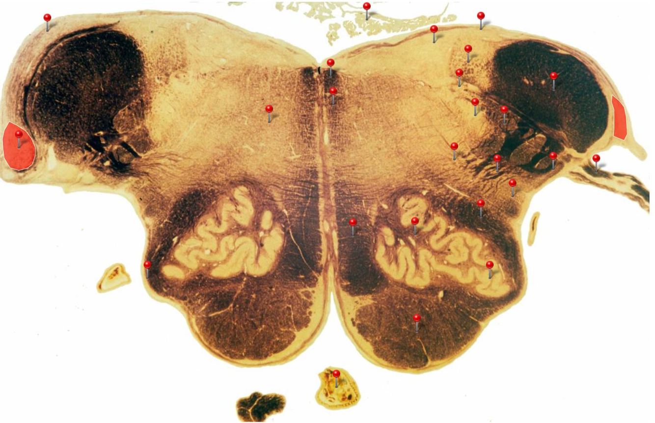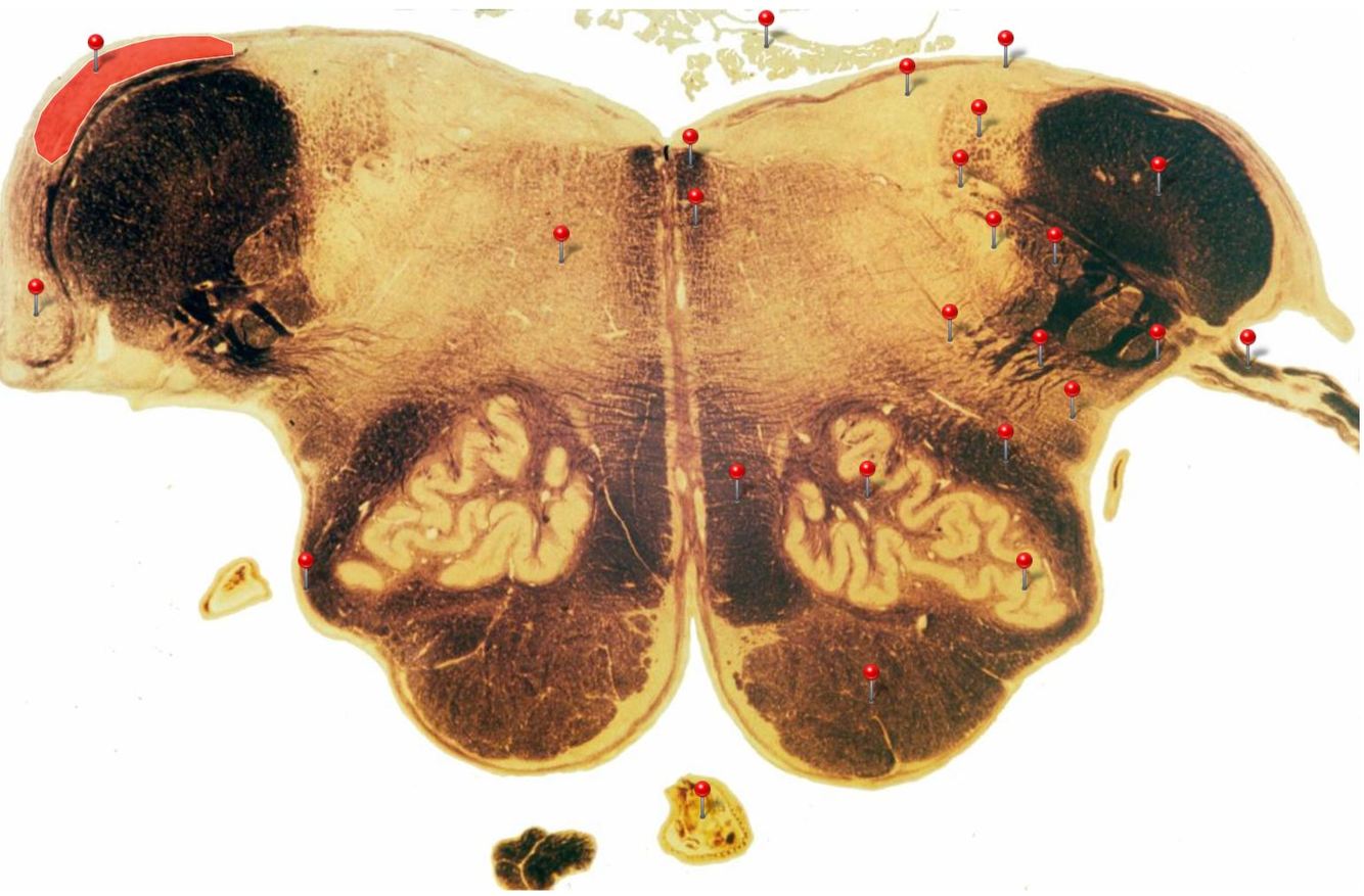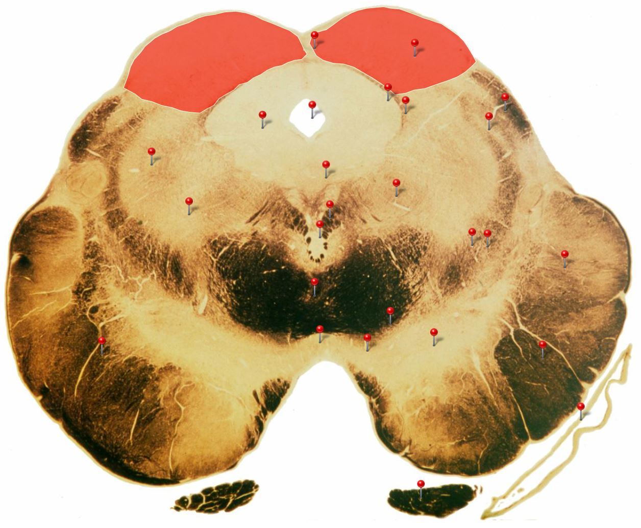 Transmits pain and temperature sensations from the spinal cord to the thalamus