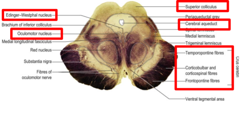 Midbrain at the level of superior colliculi