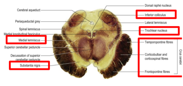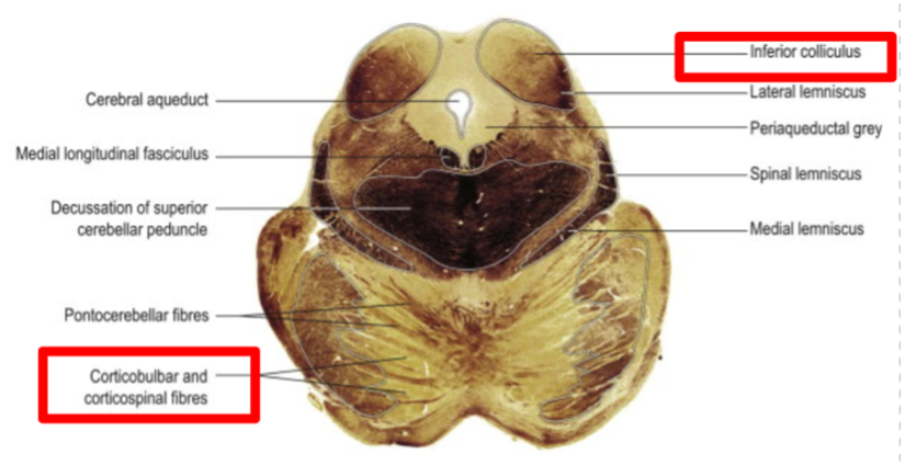 Midbrain at the level of inferior colliculi