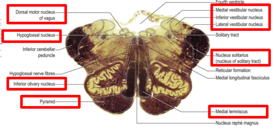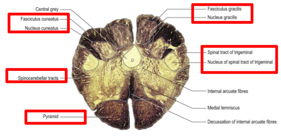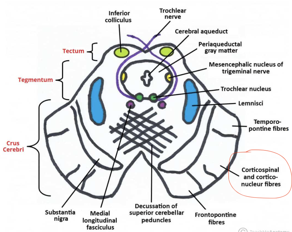 what tracts go through the midbrain, pons, medulla