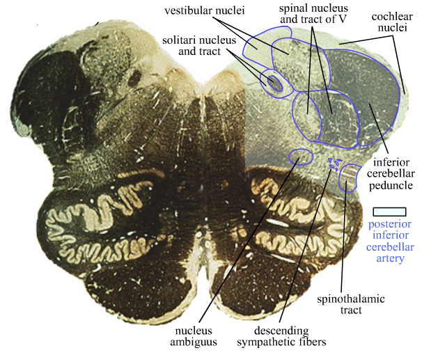 Good indication lesion location within brainstem.