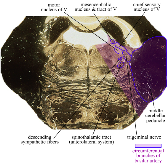 Trigeminal nerve sign ⟾ mid-rostral pons