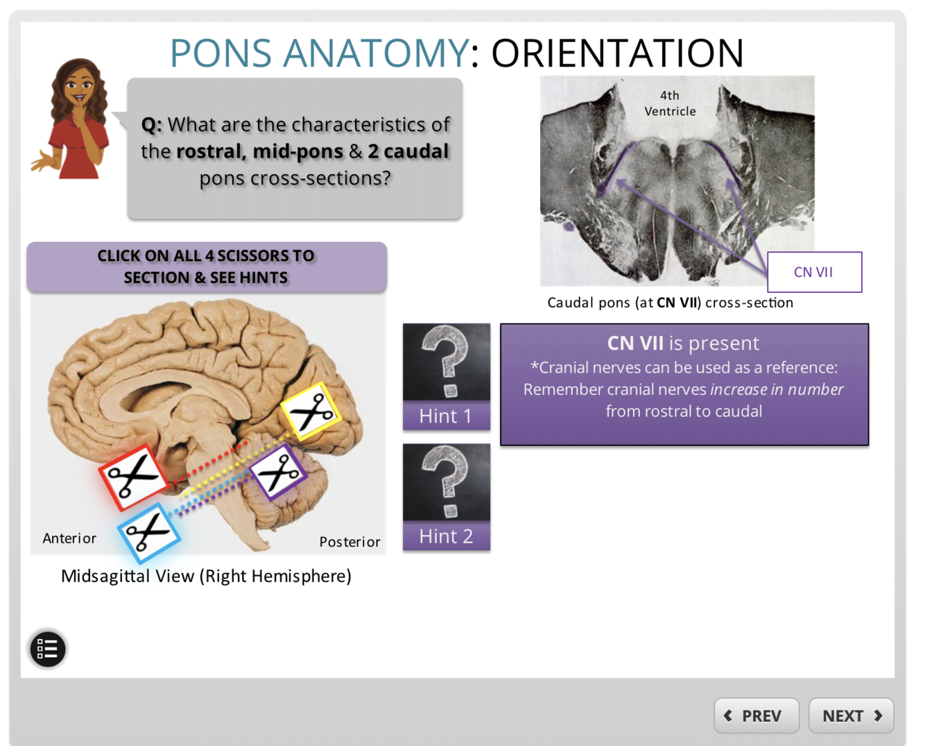 What does the cross section of caudal pons (CN VII) look like?