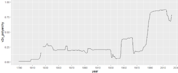 1889 = end of empire, no major increase in democracy then: oligarchic republic (only small percentage could vote)