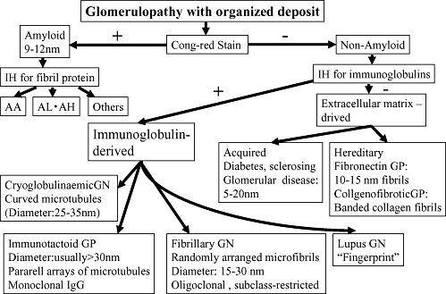Glomerular deposits characterization depends on three findings that help define the disease: