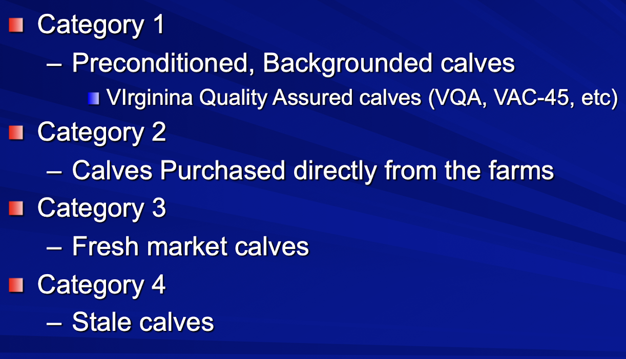 What are the 4 categories of calves?