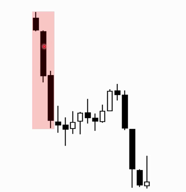 Lack of consecutive BIG BULL BARS (There is a pair of consecutive BULL BARS but they’re small compared to the Big BEAR BARS)