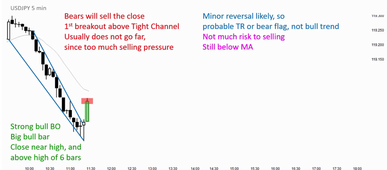 When there is a BO above a tight Channel is the first REVERSAL up usually Major or Minor?