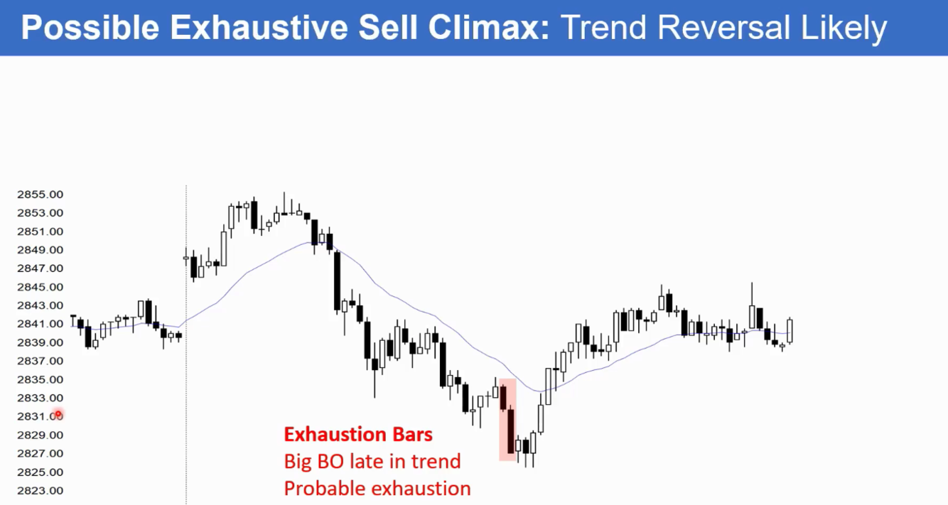 What is meant by an Exhaustion Climax Trend Bar / Gap?