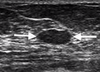 US of breast. Dark mass could be a cyst.
