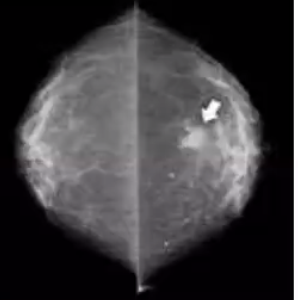 Mammogram. Section of increased density. Also some calcification - due to ageing.