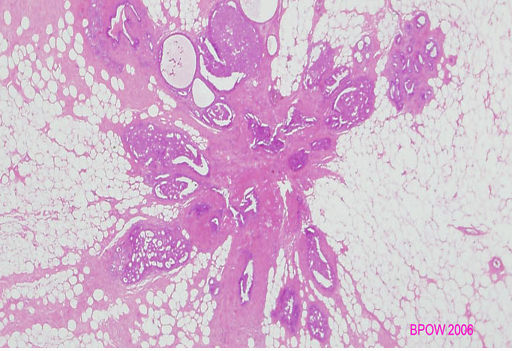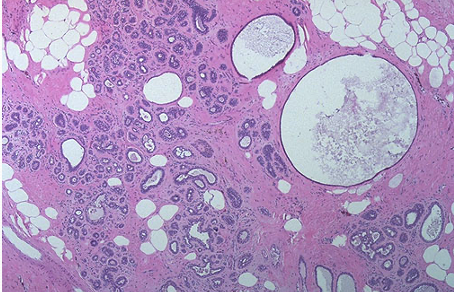 Describe the histopathology of breast disease.