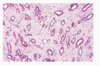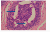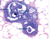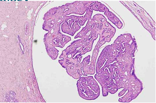 Intraductal papilloma - histology. Large ducts which is being dilated. Capillaries within them.