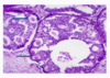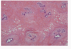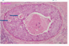 Intact tissue removed, fixed in formalin, embedded in paraffin wax, thinly sliced, stained with H&E.