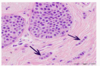 Few myoepithelial cells. Form rounded clusters of cells.