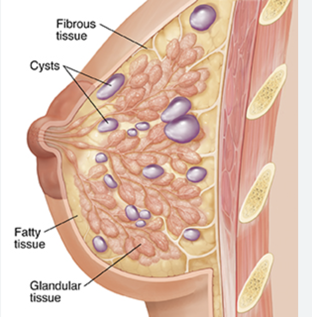 Presentation: changes according to menstrual cycle (hormone responsive), lumpiness in breasts