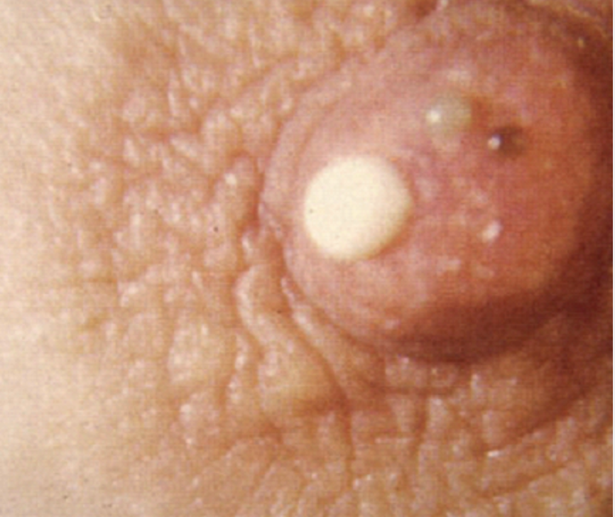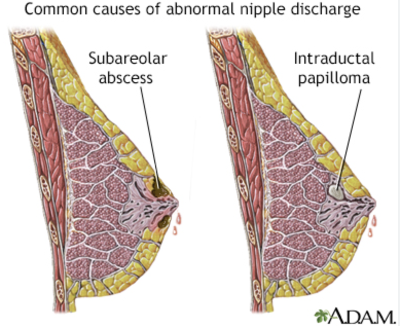 3. Firm, thick yellow- green-white nipple discharge (+/- local abscess)