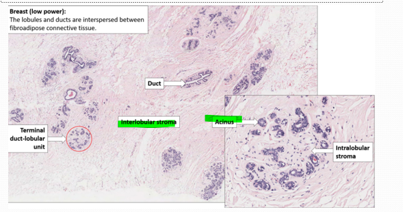 Fibro – loose stroma is replaced by compressed fibrous tissue containing