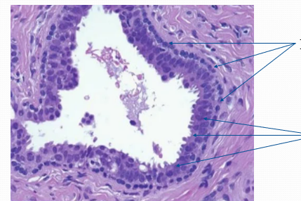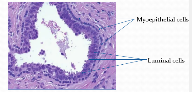 In background small nuclei – lost their cytoplasm. Myoepithelial cells
