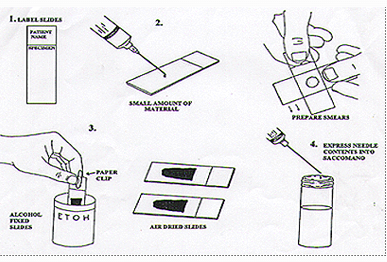 Preservated – send lab – optyimal smear – and choose best smear to process specimen