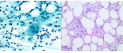 Cytology - biphasic population composed of abundant spindle stromal cells and naked nuclei, epithelium arranged in antler horn clusters or fenestrated honeycomb sheets