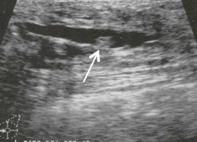 A woman presents with bloody nipple discharge, there is no palpable mass. US is performed