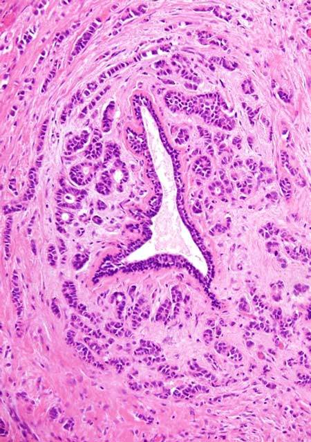 Although atypical or neoplastic proliferations are not often encountered in fibroadenomas, when they occur, lobular carcinoma in situ (LCIS) is most common.