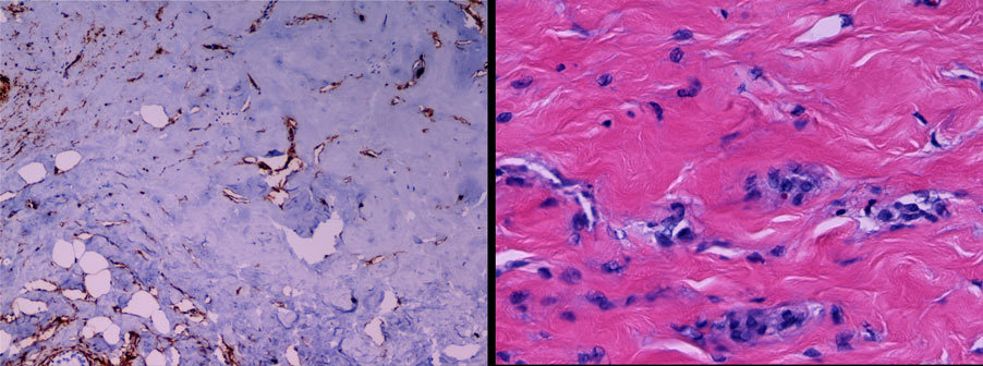 ER and CK5 staining, when used together, are valuable adjunct stains to differentiate usual duct hyperplasia from atypical proliferations within papillary lesions on breast core biopsy.