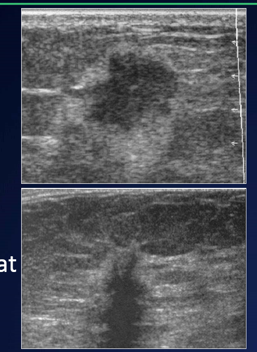 Describe the appearance of malignant solid breast lesions on US